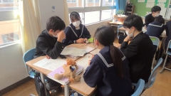 3年生は、今日で教科授業が終わりました。教科によっては、入試対策の問題を解く学習も、班で取り組んでいた姿がありました。3年間、班やクラス全体で多くの学びあいの時間を過ごしてきた3年生らしい場面ですね。