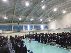 式では、呼名をされた生徒がしっかりと返事をし、成長した姿を見ることができました。答辞では、会場が一体感を持って聞き入り、3年間の学びが目に浮かびました。最後の式歌合唱では、心のこもった素敵な合唱を披露。これで最後だと思うと、さみしく感じました。終わった後、臨席いただいた来賓の方からも「いい式だった。雰囲気も良く、生徒も良かった。」との感想でした。