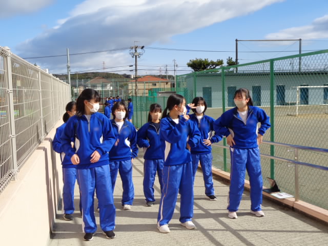 体育館は式場設営されているため、運動場で練習しているのだとか。