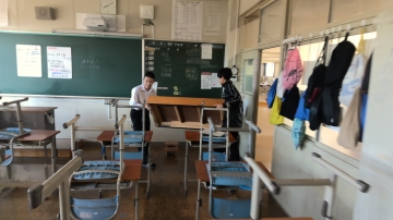 重たい机を運びながらも、笑顔で動く生徒、周りを見て足りないところを手伝う生徒など、一人ひとりが「みんなのためにできること」を考えて行動していました。慌ただしい朝の時間ではありましたが、教室には温かな空気が流れていました。