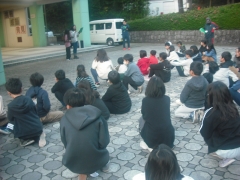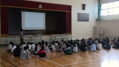 全校で避難訓練を行いました。地震が起き、津波が発生したという想定で、校舎3階への垂直避難の訓練でした。