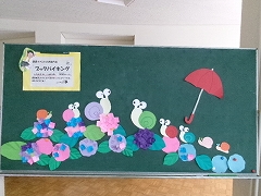 6/5(月)から図書館祭りを行っています。図書館司書のアドバイスや支援のもと、児童図書委員のおすすめの本などを並べた「ブックバイキングスペース」が、2階ホールに設置されています。いろいろなジャンルの本があり、おすすめコメントカードもあるため、とても興味深いスペースとなっています。