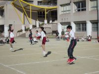 ★21日、なわとびチャレンジ発表会を行いました。2学期から、自分のめあてに向かって短縄にチャレンジしてきました。また、ペア学年で、気持ちを合わせて長縄にチャレンジしてきました。今日の発表会では、自分が披露したい技をエントリーします。前とび、交さとび、2重とび・・いろいろな技を一生懸命披露しました。長縄では、声をかけあい、ペアの学年で、今まで練習してきた頑張りを発表しました。