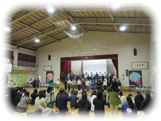 みんなが輪になり、全校に向かって歌う歌声に、会場は今度は静かに惹きこまれていました。