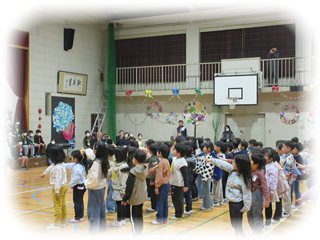しかし!曲が終わるとすぐさま、6年生が一気にひな壇に戻り、もとの静かな雰囲気を取り戻しました。