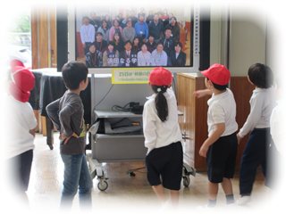 続いては、スライドで、学校生活の楽しいことや学ぶことについて、紹介していきます。1年生はワクワクの、2年生以上は去年の様子を思いだしているような表情で見入っていました。