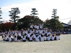 5・6年生はダンスと組体操の技を組み合わせて表現しました。下級生はその演技にくぎ付けでした。