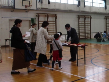 おうちの人と一緒に来ていただき、内科・歯科・視力・聴力の検査をしました。おうちの人と離れて、やや緊張気味の子もいましたが、列に並んで順序良く検査を受けることができました。