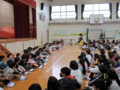 元気よく1年生が入場した後は、代表委員が中心になり、歓迎の言葉や、先生たちの紹介などがあり、最後に羽津小○×クイズをして楽しみました。