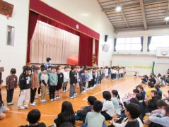 初めて全校で体育館に集まり、1年生の入学を歓迎しました。