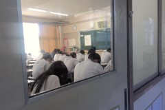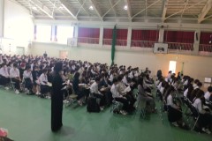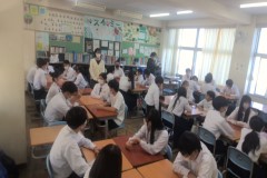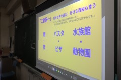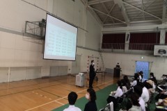 スライドを使って進路担当の先生より説明がありました。「進路」の手引きを参考にお家の人と相談をして進路について考えていきましょう。