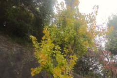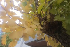 イチョウ(銀杏)は日本では全国的によく見かける樹木で裸子植物です。世界で最古の現生樹種の一つです。イチョウ類は地史的には古世代の終わりくらい(約2億9900万年前~約2億5190万年前)に出現したと考えられています。葉は単葉で、葉身は扇形で長い葉柄を持ちます。基本的に葉の中央部は浅裂となりますが、切れ込みの入らないものや、深裂となるものもあります。秋になると比較的温度に関係なく、暖地でも落葉前の葉は鮮やかな黄色に黄葉します。イチョウは雄株と雌株があり、秋になると雌株に種子であるギンナン(銀杏)ができます。ギンナンは下処理の工程を踏まえて、調理すれば食用になるようです。ちなみに中学校にあるイチョウは雄株と思われるのでギンナンはできません。