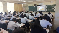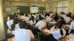 ヒロシマ「」継ぐ展実行委員会のみなさんを講師としてお招きし、オンラインで人権平和学習を行いました。3年生の生徒教員だけでなく地域の方も参加されみんなで学習しました。