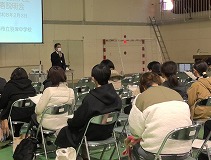 校長先生の挨拶では、「歌声と本とありがとうがいっぱいの学校です。山コンの取り組みみんなで元気にやっています。」と学校の様子を伝えてもらいました。また各担当から中学校の日課や生活面や保健給食のことをお話しがありました。教育委員会より令和8年度夏以降の部活動についてお話しがありました。夏以降学校の部活は平日のみとなることや休日は地域型の部活ができることを紹介されました。