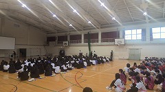 みなさんすみやかに避難することができました。校長先生より「日本で震度1以上を観測した地震は 4,456 回でした。地震による災害が起こったとき安全に避難ができるように備えていきましょう。」とお話しがありました。