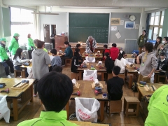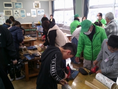 本日、羽津地区まちづくり協議会、羽津みどりの会、そしてコミュニティースクール委員の皆さまをお招きし、6年生が「竹あかり」の制作に取り組みました。