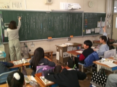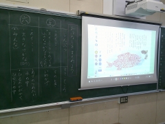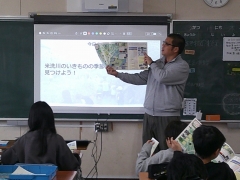 授業では、学校の近くを流れる米洗川にすむ生き物について、写真や資料を使ってわかりやすく教えていただきました。子どもたちは、身近な自然の中にたくさんの生き物がくらしていることに驚きながら、季節によって変化する生き物の姿やくらしについて、興味深く学んでいました。