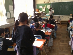 4年生は理科の学習で「生き物の一年間」について学んでいます。今日はその学習の一環として、稲生高等学校の藤井先生をゲストティーチャーにお迎えし、出前授業を行っていただきました。