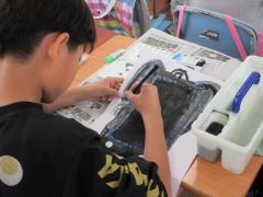1年生では、ひらがなの学習が始まっています。 今日は「へ」の書き方を学習しました。先生のお手本をよく見ながら、ゆっくりと筆順を確かめて書く子、書き終えると「できたよ」と嬉しそうに見せてくれる子など、一人ひとりが集中して取り組む姿が見られました。また、「へ」を使った言葉集めにも挑戦しました。「へび」「へや」など、子どもたちは思いついた言葉を元気に発表し、教室は楽しい声でいっぱいになりました。