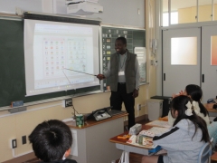 今年度より、HEFのアルバート先生が羽津北小学校で英語の授業を担当してくださることになりました。 今日は、5年生と6年生が今年最初の英語の授業を行いました。授業では、先生の出身地であるガーナについて、国の場所や文化などを写真を交えて紹介していただき、子どもたちは「こんなに遠いんだ」「行ってみたいな」など、興味津々の様子で話を聞いていました。