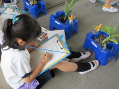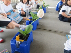 本日、2年生が生活科の時間に、チューリップの観察を行いました。 1年生のときに植えた球根が、冬を越えてぐんぐん育ち、色とりどりの花を咲かせています。