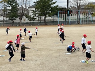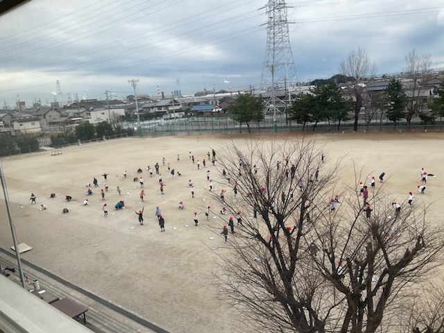 そんな寒い中、1年生の子どもたちは体育の時間に外で元気になわとびです。