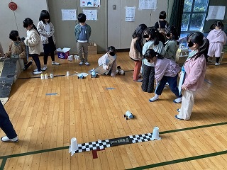 アイデアを出し合い、作ったおもちゃランド、みんなで楽しめたかな?