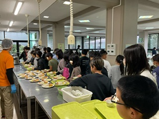 食事係が中心になって準備を進め、みんなで一緒にいただきます。やっぱり、みんなおなかが空いていたようで朝からおかわりする子が多多かったです。