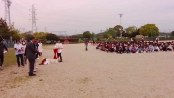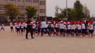 運動場に逃げてきたら、整列し、人数確認です。
