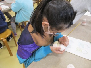 「しまった、線が太くなってしまった。」「筆で描くの難しいな。」「そおっとそおっと。」「ふぅ、緊張するな。」など作業中につぶやきが聞こえてきました。