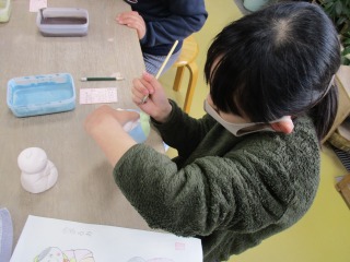 この日は、ばんこの里会館でお雛様の絵付け体験をしてきました。