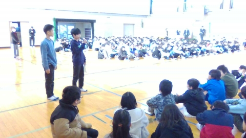 体育委員会の人たちが、長縄跳びと短縄跳びの技を紹介してくれました。