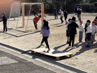 体力づくりと共に、友だちと息を合わせて頑張る「けやきっ子」たち。
