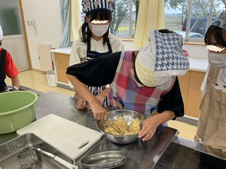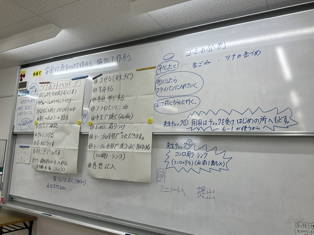 今日は、6年生が家庭科の調理実習で「ツナポテトハンバーグ」を作っていました。