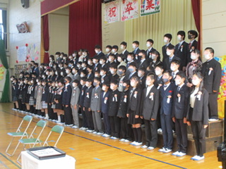 卒業生一人ひとりが小学校の思い出や夢を語り、呼びかけでは卒業の喜びをしっかりと歌声に乗せて保護者、地域の方々、私たち教職員にメッセージとして送ってくれました。