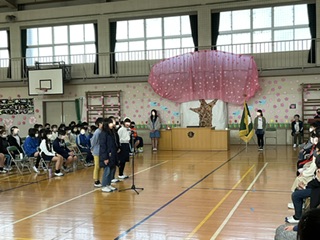 今日は、6年生の卒業式の練習を5年生が見学し、その後、校旗引継ぎ式を行いました。今年度も卒業式に在校生は出席しないため、このような場を設けています。5年生が来年度の学校のリーダーになるための心構えをするきっかけになればと思います。