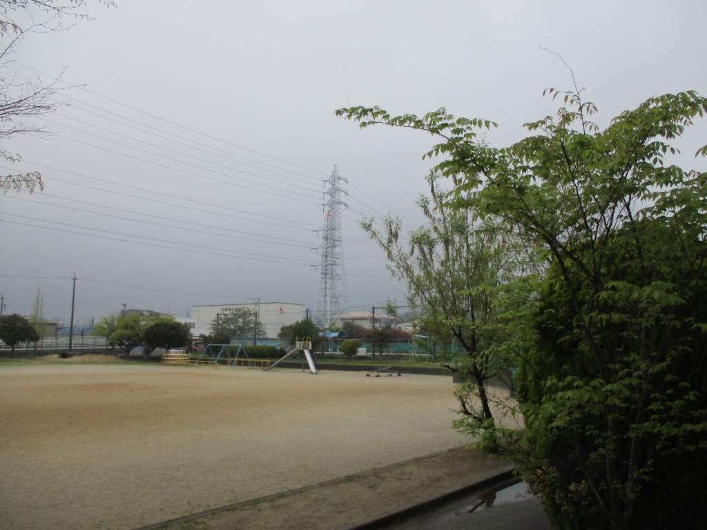 今日はシトシト雨模様。運動場の遊具も子どもたちの姿がなく寂しそうに感じます。