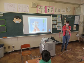 きゅうしょくもさいかいされるということで、ほけんのせんせいから、てあらいとそおしゃるでぃすたんすについておしえてもらいました。