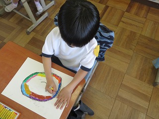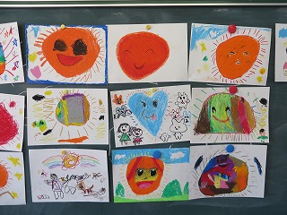 はじめての「ずこう」のがくしゅうもしました。こんかいは「ぼくのたいよう、わたしのたいよう」ということで、おもいおもいのたいようをくれぱすでかきました。