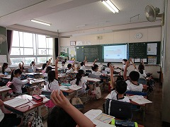 特に算数ではデジタル教科書をプロジェクターで映して、学習活動を進めることが多くなりました。