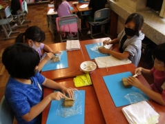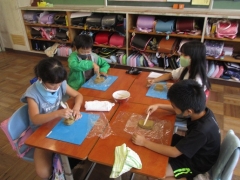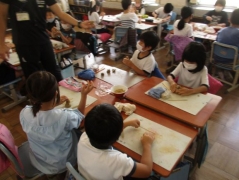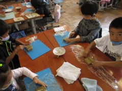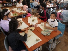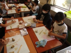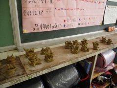 羽津地区で四日市万古焼を焼いておられる、醉月陶苑の清水さんに学校に来ていただき、万古焼のことを教えていただき、その後、シーサーつくりを体験しました。子どもたちは、自分だけのシーサーを作ることができて、とても楽しそうでした。清水さんには、各教室をまわって助言して頂きました。後日、学校の窯で焼く予定です。子どもたちは、焼き上がりを楽しみにしています。