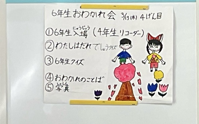 今日は、ひまわり学級での6年生を送る会が開かれました。