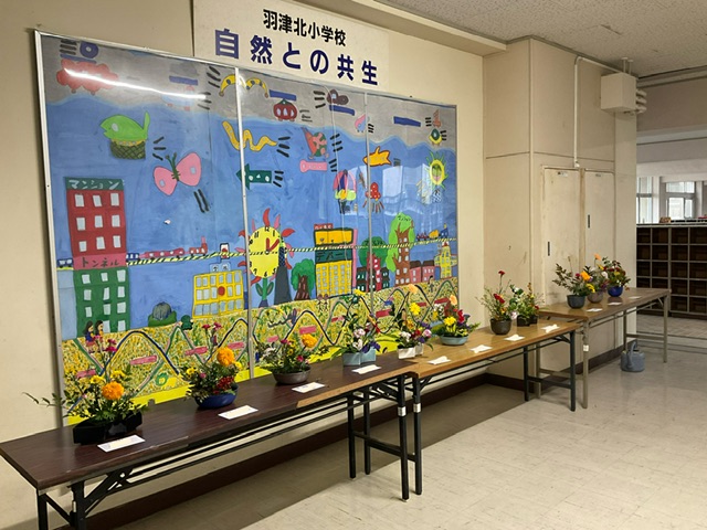 毎年、数回の体験でここまで素敵な生花ができるようになることに感心させられます。毎年ご指導いただいている地域ボランティアの先生方に感謝申し上げます。