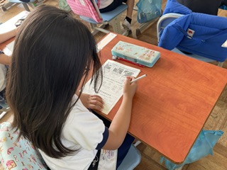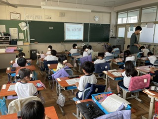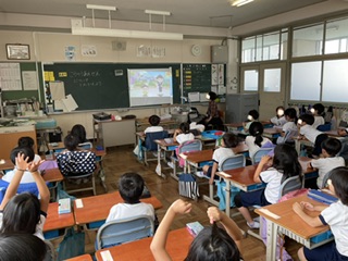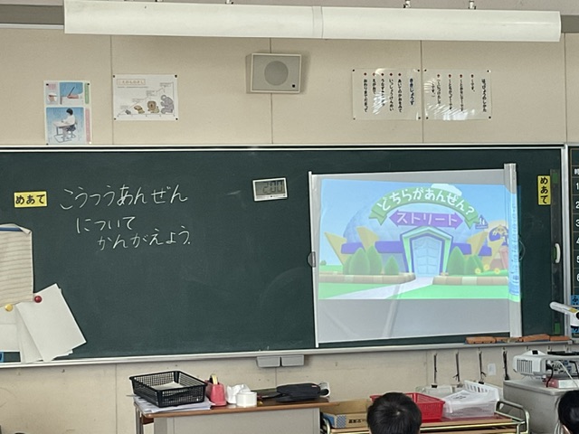 1年生は、5時間目に交通安全について考える授業をしていました。道路の渡り方や信号の見方などについて動画を見て、その後問題に解答していました。