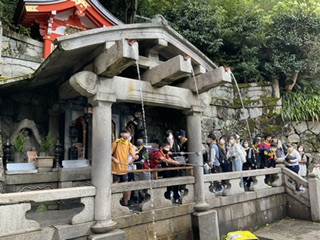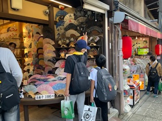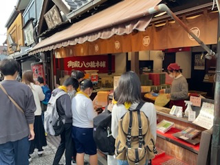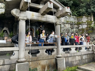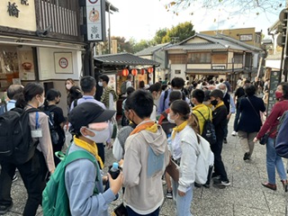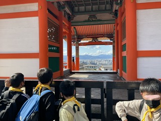 ガイドさんから清水寺について詳しく教えてもらいながら清水寺を見学し、その後、ショッピングタイム。お家の人をはじめ、おじいちゃんおばあちゃんにも買ったよ!という子もいました。土産話一緒に渡して、喜んでもらえるといいね。
