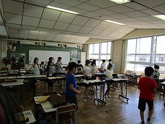 今、5・6年生は器楽合奏に取り組んでいます。今日は5年生が、音楽で器楽合奏に取り組んでいました。