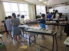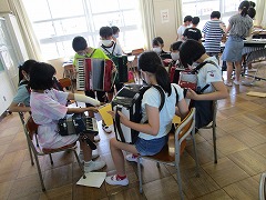 アコーディアンや木琴、鉄琴、ピアノ、打楽器などいろんな楽器を使って練習していました。練習を重ねてきれいな合奏ができるようになるといいですね。