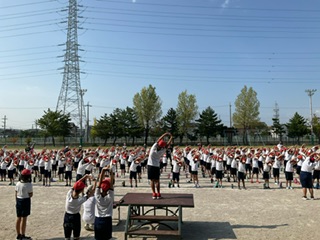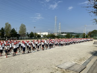 今日は1時間目に、今週土曜日に本番を迎える運動会の開閉会式の全体練習を行いました。