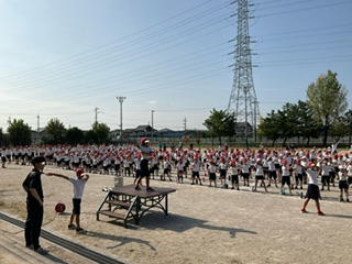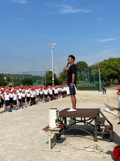 今日は朝から日差しが強く、暑い日になったので、できる限り時間を短縮して練習しました。その短い時間の中で、子どもたちはキビキビとした動きを見せてくれました。さすがは「けやきっ子」と感心しました。