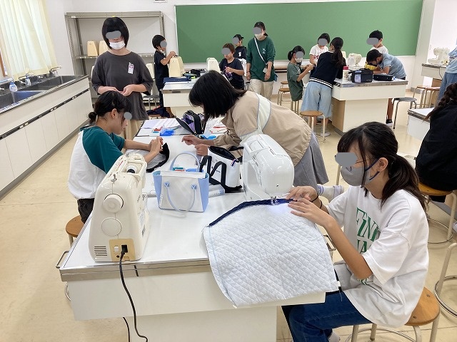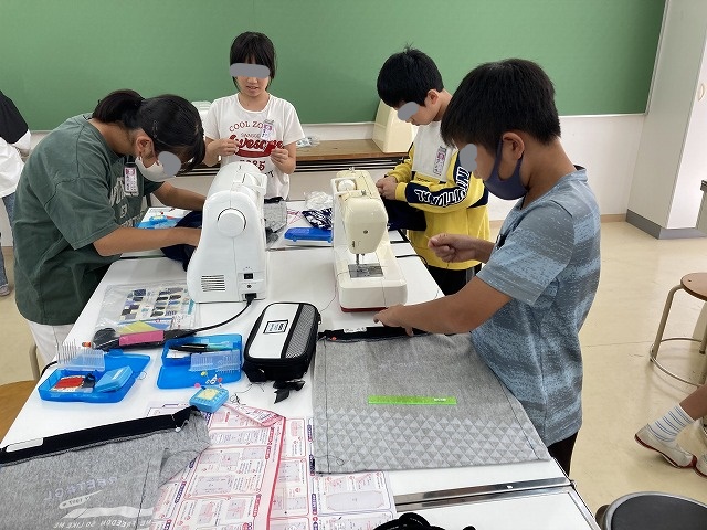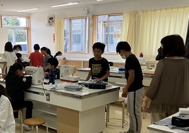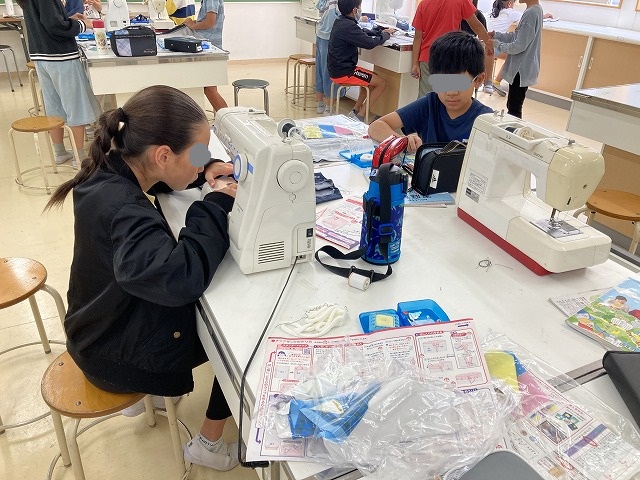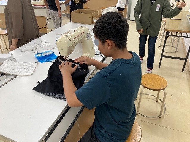6年生が家庭科で、ミシンを使ってナップザックを作成しました。